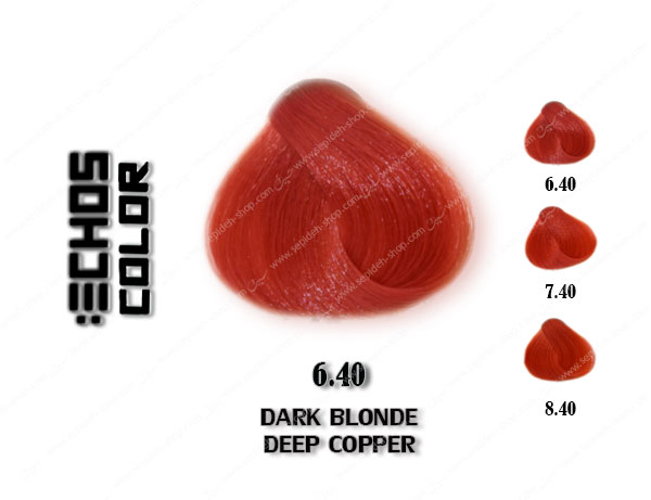 DARK BLONDE DEEP COPPER The innovative formula of Echos Color has been studied to reach excellent colour results, it guarantees total grey hair cover and the anti-oxidizing properties of Vitamin Cassure long lasting tones. The effective synergy with beeswax provides natural protection, and carries out a conditioning and softening action to leave hair brilliant and luminous. In order to guarantee high colour stability, reduce the risk of unwanted colour changes and reach excellent results we recommend the use of the Echosline cream oxidizing PROFESSIONAL HAIR COLORING CREAM.مشخصات رنگ اچ اس لاین بلوند مسی تیره عمیق 6.40